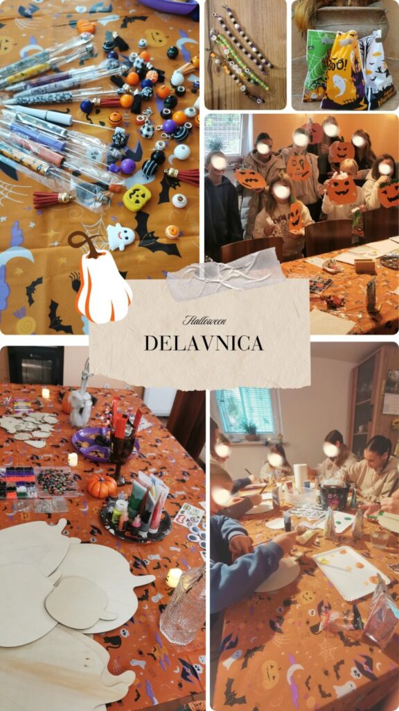 V tem duhu skozi leto pripravljamo tematske delavnice, kot so Halloween, zimska in velikonočna delavnica. Vsaka delavnica traja 3 ure, otroci pa v tem času ustvarjajo tematske okraske, se zabavajo in družijo.